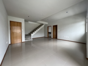 No primeiro piso tem uma ampla sala com varanda, uma suíte, a cozinha e uma área de serviço de apoio à cozinha.